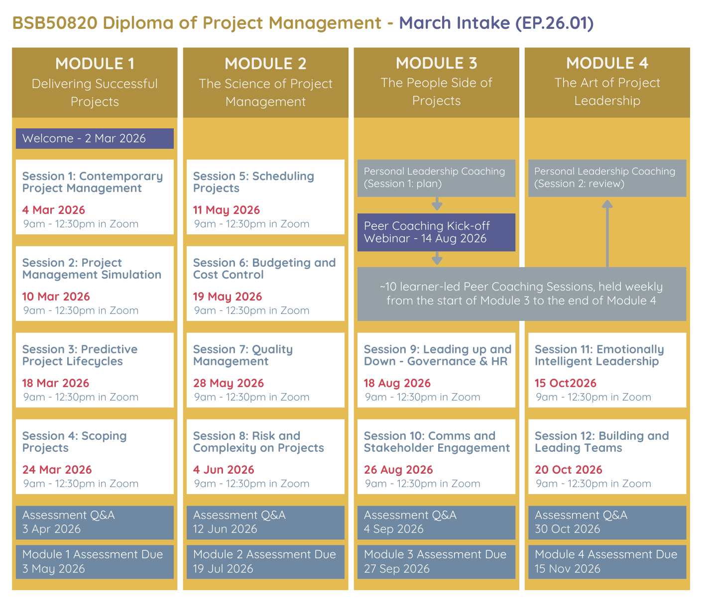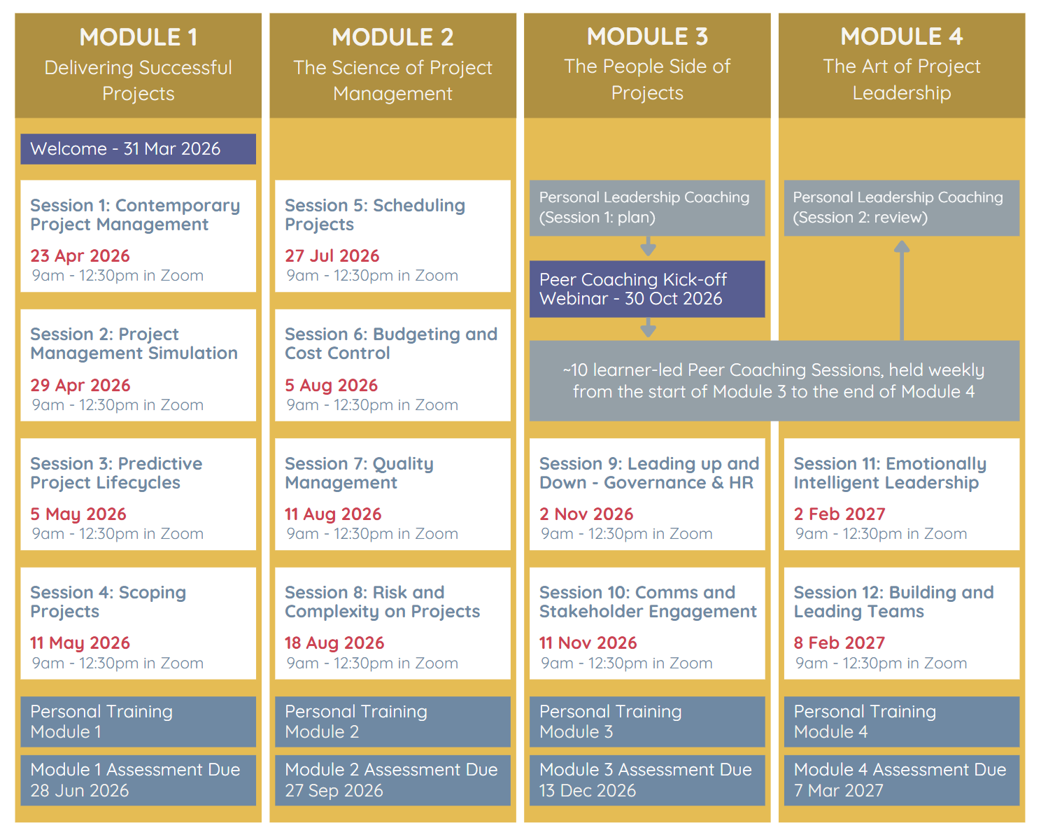 - 4 Assessment Webinars - to walk you through what you need to submit in each module assessment